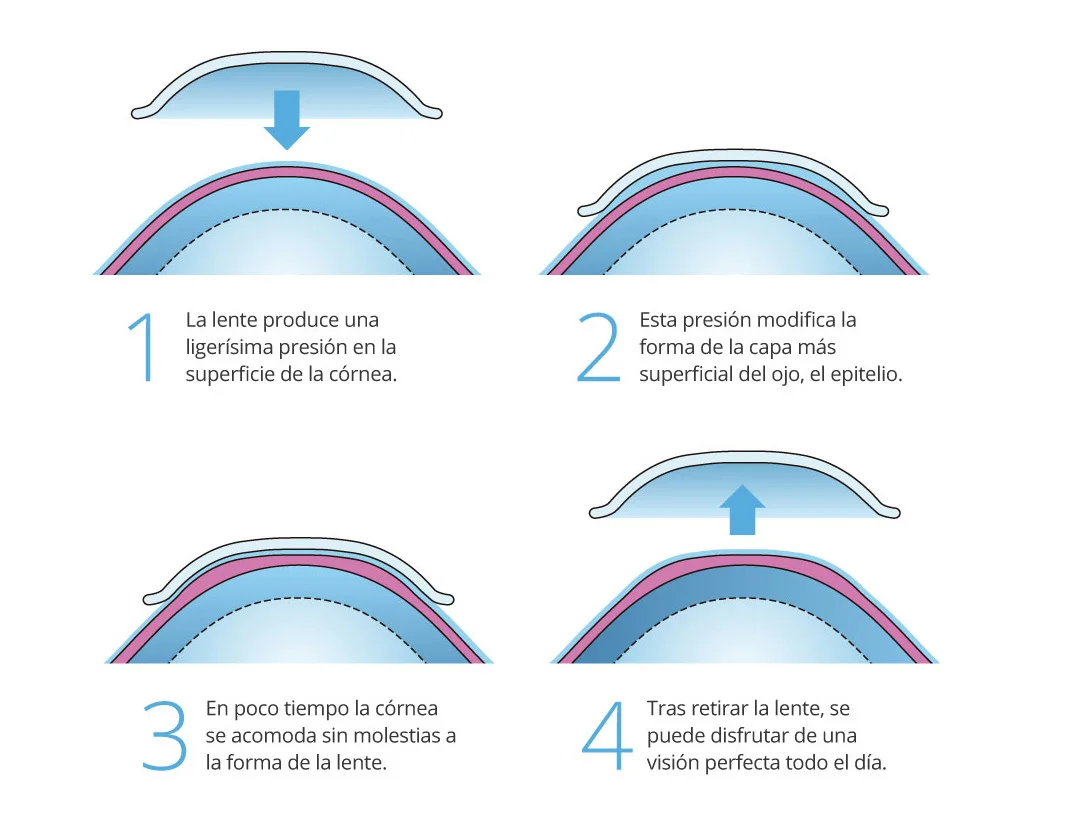 Las lentes de contacto de ortoqueratología se utilizan durante las horas de sueño. Durante la noche se producen los cambios corneales necesarios que permiten ver bien durante el día.